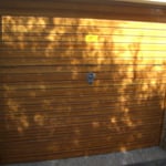 También se han realizado imitaciones a madera sobre puertas de garaje, del mismo tipo de material, y aunque ésta es de lamas y tampoco es plana, no poseen la misma dificultad de las vigas anteriores.