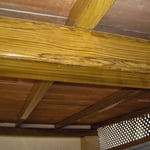 Se han realizado imitaciones a madera sobre vigas de hierro galvanizadas, lo cual conlleva una dificultad añadida, puesto que no es una superficie ancha y plana como sería una puerta.